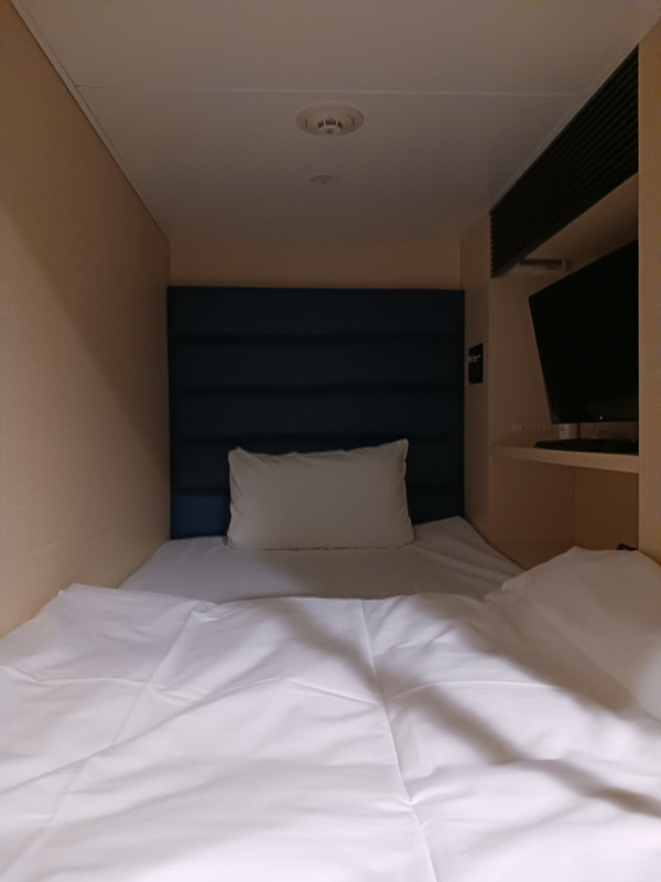 靴は脱いで上がり専用の鍵付き小型ロッカーに入れてその上にデイパックなら入ります。で必要なものはカプセル内の壁面鍵付きロッカーを利用します。なので2カ所のロッカーが有るので大抵の荷物でも何とか大丈夫で、これで使い勝手も解消出来ました。