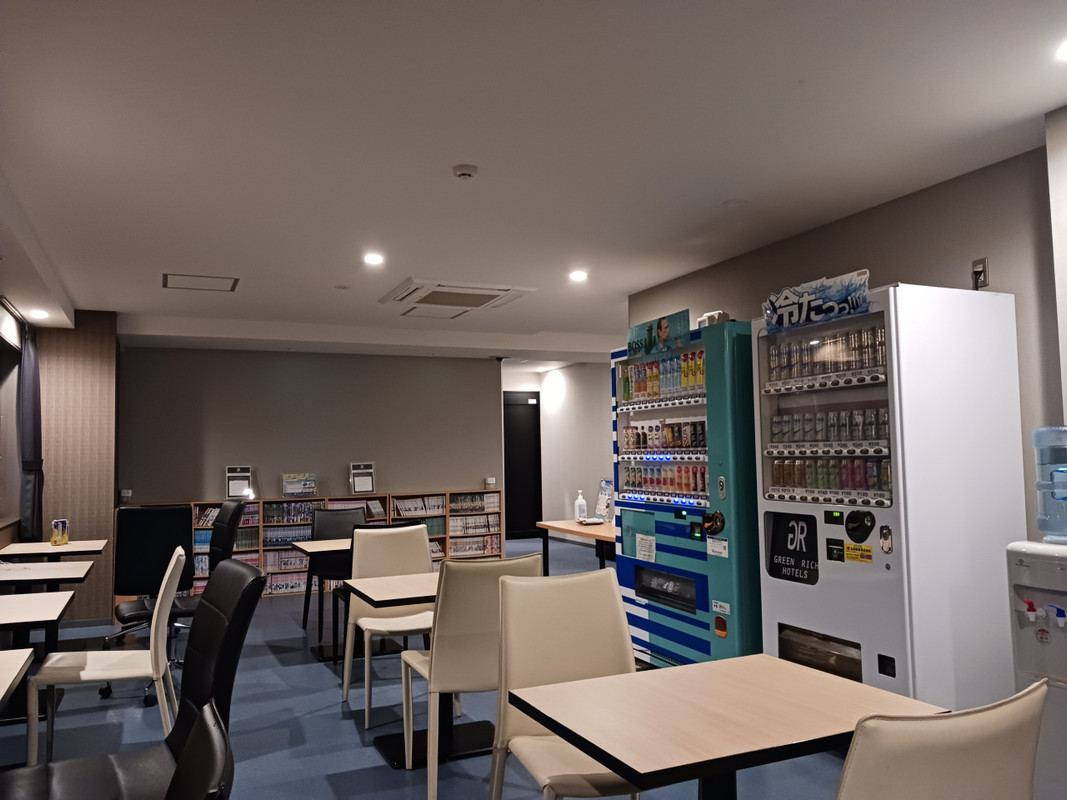 同フロアーには専用ラウンジが在り休憩や食事などが出来るようにテーブルと椅子、ウォーターサーバー(温・冷水)・給湯ポット・電子レンジ・漫画本コーナーに有料マッサージチェアーなどが用意されてるのでここで寛げます。