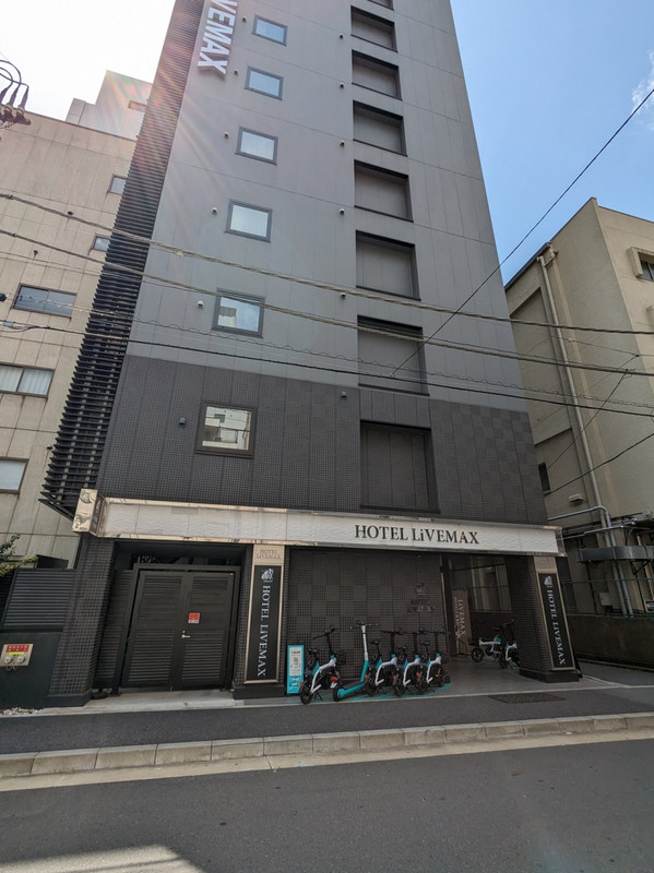 神田駅から歩いて数分のところにありました。新しく綺麗なホテルでしたが、コンパクトな部屋でした。 ホテルのエントランス付近には電動キックボード(LUUP)の置き場があるので、電動キックボードをレンタルして観光などの移動に利用するのもお薦めです。