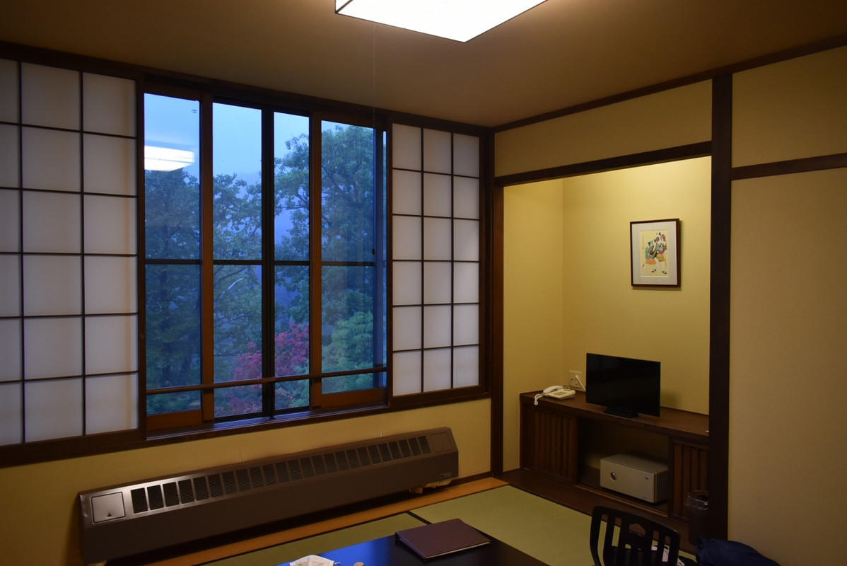 今回残念なのは大雨のため露天風呂に入れなかったことである