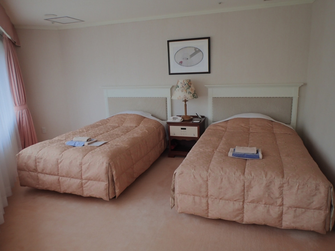 客室は6タイプ。ダブル(1Q,34㎡)、スタンダードツイン(2S,36㎡)、スーペリアツイン(2SD,41㎡)、デラックスツイン(2D,58㎡)、スイートの(2D,102㎡)と和室(12畳)。今回は公式サイトから予約したスーペリアツインの「チェックアウト早めでお得」プラン。早めと言っても9時までなので、無問題。