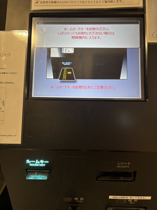 機械で手続きしてチェックイン、機械からカードキーを受け取ります。