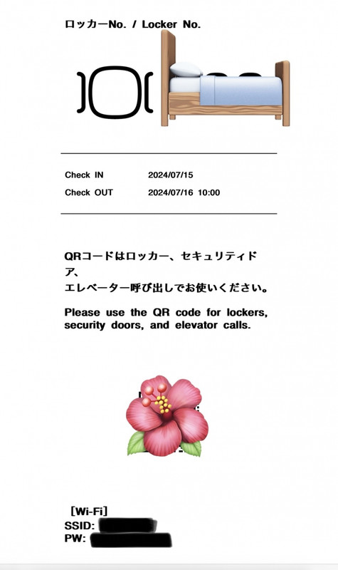 宿泊施設からのお知らせ