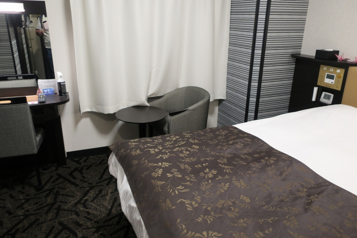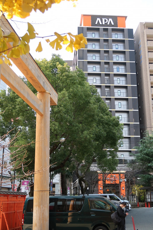 神戸・三ノ宮駅から北側の商店街(歓楽街?)を西側へ抜けて8分ほど、生田神社へ進み、門前左にあるアパホテル。夜間は駅からの歓楽街の呼び込みが激しく通りずらい位置にある。客室内は一般的なアパホテルの作りで、寝るだけならば十分。