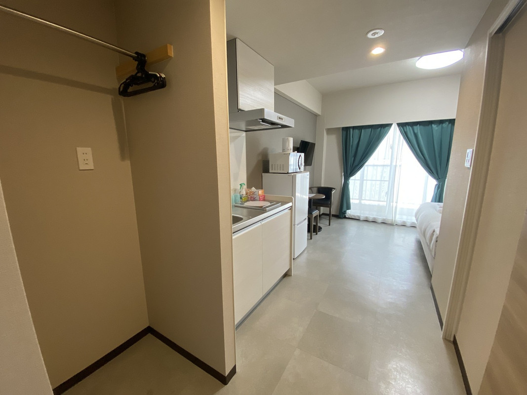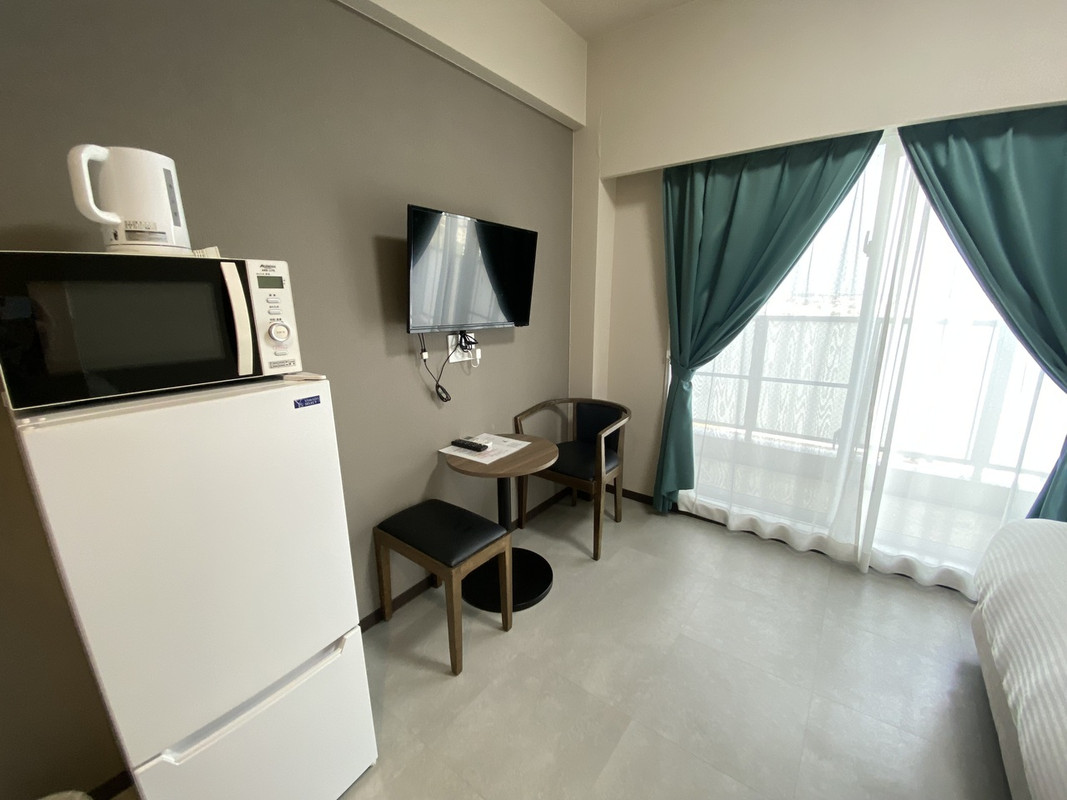以前本島でも利用したことがありますが、部屋も綺麗で流し台や電子レンジもありワンルームマンションみたいで快適です。