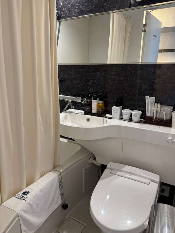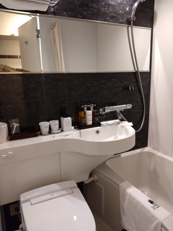 倉敷駅から歩いて数分。部屋は最低限の広さで普通のビジネスホテルだけど泊まるだけなら充分。アメニティは一通りそろっていて、ユニットバスはきれいでした。近くに22時までやっているスーパーがあるので、食事は買って済ませるのもありかもしれません。