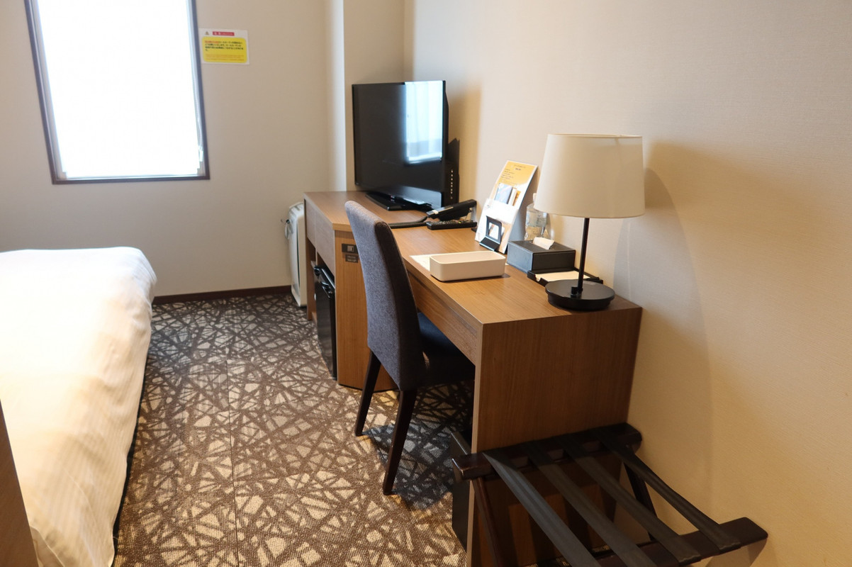 部屋はグレーを基調とした、ふつーにビジネスホテルなシンプルなインテリア。道路に面した部屋だったけど、室内は静かで眠れました。
