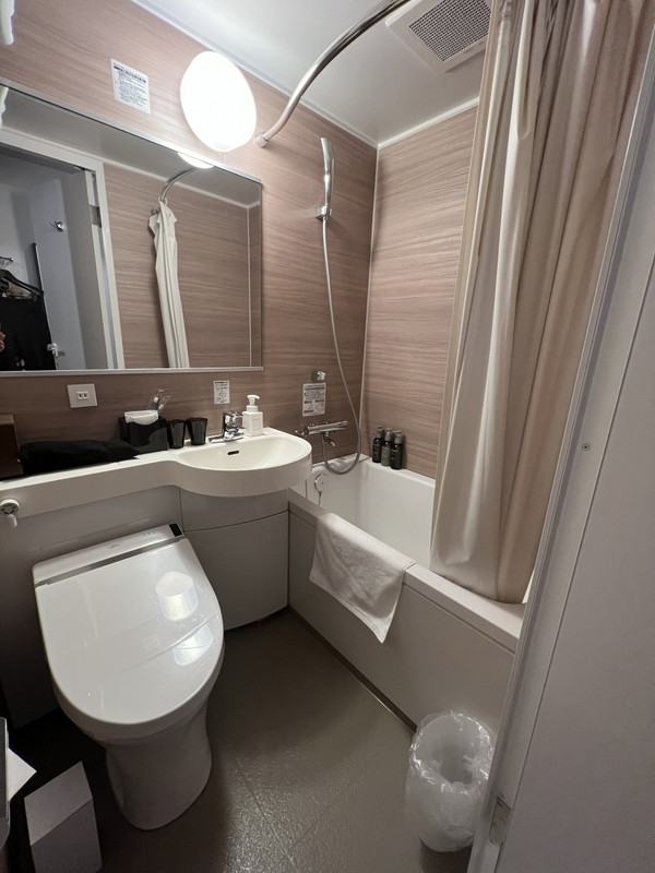 バスタブとデスクが無いのが特徴と言えるでしょうか。狭さを感じず荷物整理は悠々と出来、部屋食も簡易ならば大丈夫。シャワーブースは独立型で快適に利用できます。駅や繁華街にも近いので、ビジネスでも観光でも便利と思います。シャワーのみでの滞在なので、自分としては二泊が限度かなとも思いますが、総合的にはキレイで快適な良いホテルでした。