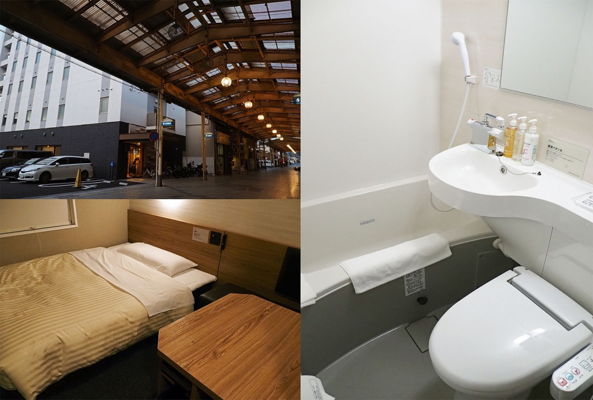 HOTELの周囲は商店街なのですがほぼシャッター街で、スピーカーからラジオの大きな音だけが響いていて非常に寂しく、金曜の夜も、土曜の夕方も開いている店を数える方が早いくらいなので、周囲で食事する予定なら駅方面まで出掛けた方が良いかもしれません。