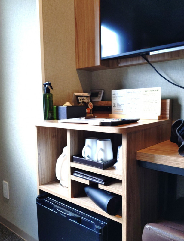 客室・アメニティは他のスーパーホテルと同じで、ウエルカムバーはなくてウエルカムドリンクのコーヒーがありました。