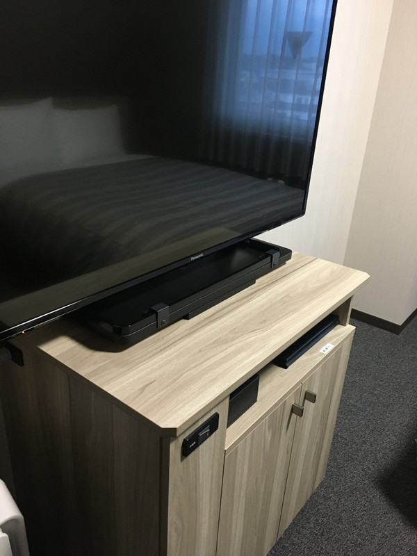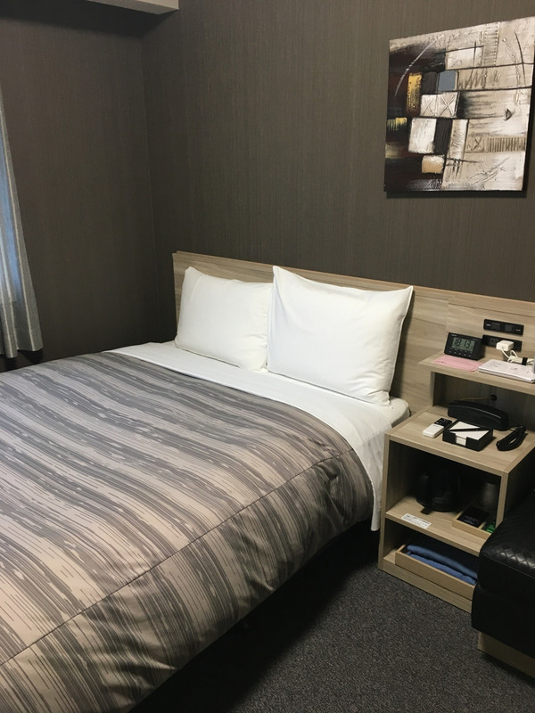 宿泊した客室は部屋の形が長方形ではなく、正方形で、ベッド、テーブル、ソファ、テレビ台、荷物置き台があっても部屋の狭さを感じることなく、ゆとりのある空間で、寛ぐことができました。