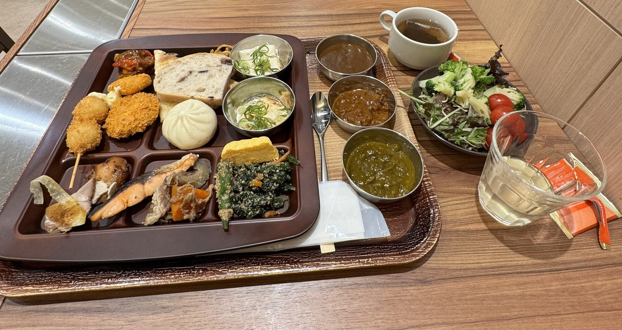朝食は以前は松屋だったらしいが、インドカレー3種もある、とっても種類豊富なブッフェになっていた