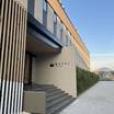 施設の正面 (日没後)