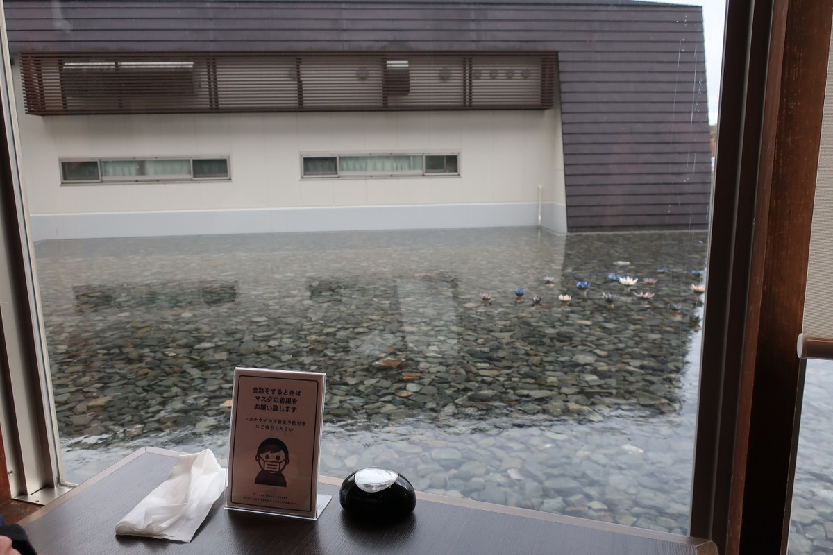 アクアイグニスは宿泊施設、ショップ、レストラン等がある複合温泉施設です。今回は日帰り入浴施設と、レストラン「笠庵」を利用しました。日帰り入浴施設である片岡温泉は100%源泉掛け流しだそうです。あいにくの雨だったので施設の中は人も多く、ゆっくりすることができませんでした。