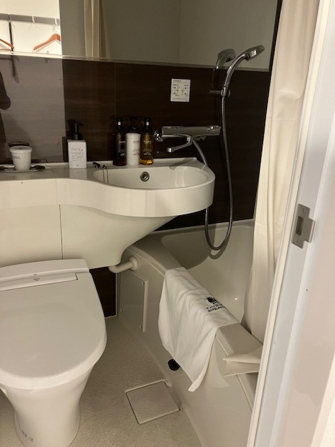 名古屋駅新幹線口から徒歩数分でホテルに到着した。周囲に飲食店やコンビニが多く非常に便利であり、かといって繁華街ではないので騒がしくもなかった。フロントや客室、風呂は非常に清潔で心地が良かった。ただ狭いので、ゆったりしたい人には不向きである。全体的にはコスパが良いと感じた。