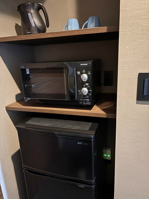 部屋は新しいだけあり清潔。窓の向きのためかやや薄暗いです。バスルームも部屋も広くはないです。電子レンジと小さい冷凍冷蔵庫があるので便利です。