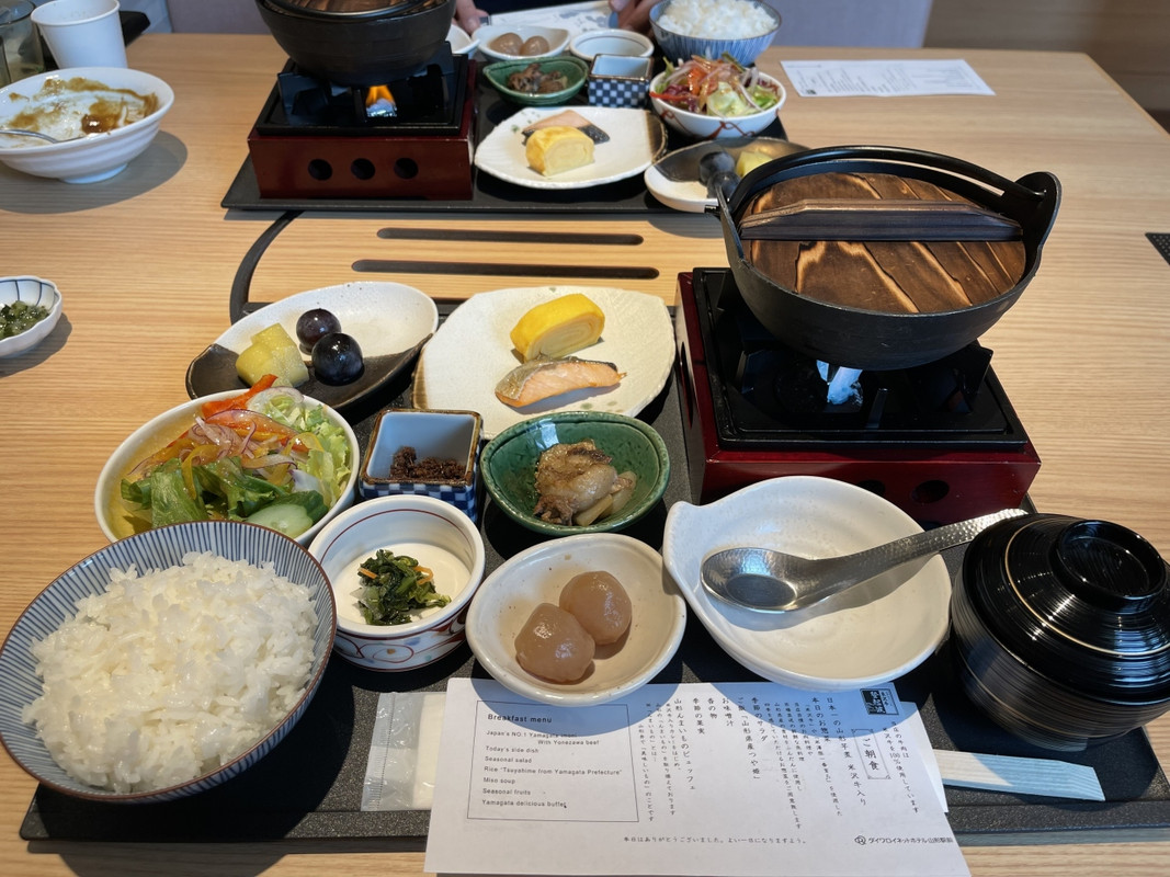このホテルを選んだ理由は朝食が期待できるところでした。一階に米沢牛をサーブする「登起波」(ときわ)が入っています。期待通りハムもソーセージもビーフシチューもどれも文句なしに美味しいです。夕食もこちらですき焼きをいただきましたが、どちらかというとお肉が苦手な私でもペロッと頂けちゃいました。