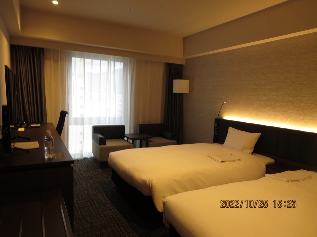 客室は少し広めのモデレートタイプで寛げます。駅にも近く繁華街にも徒歩圏内で行かれるのでここを選んで大正解でした。1 / 7
