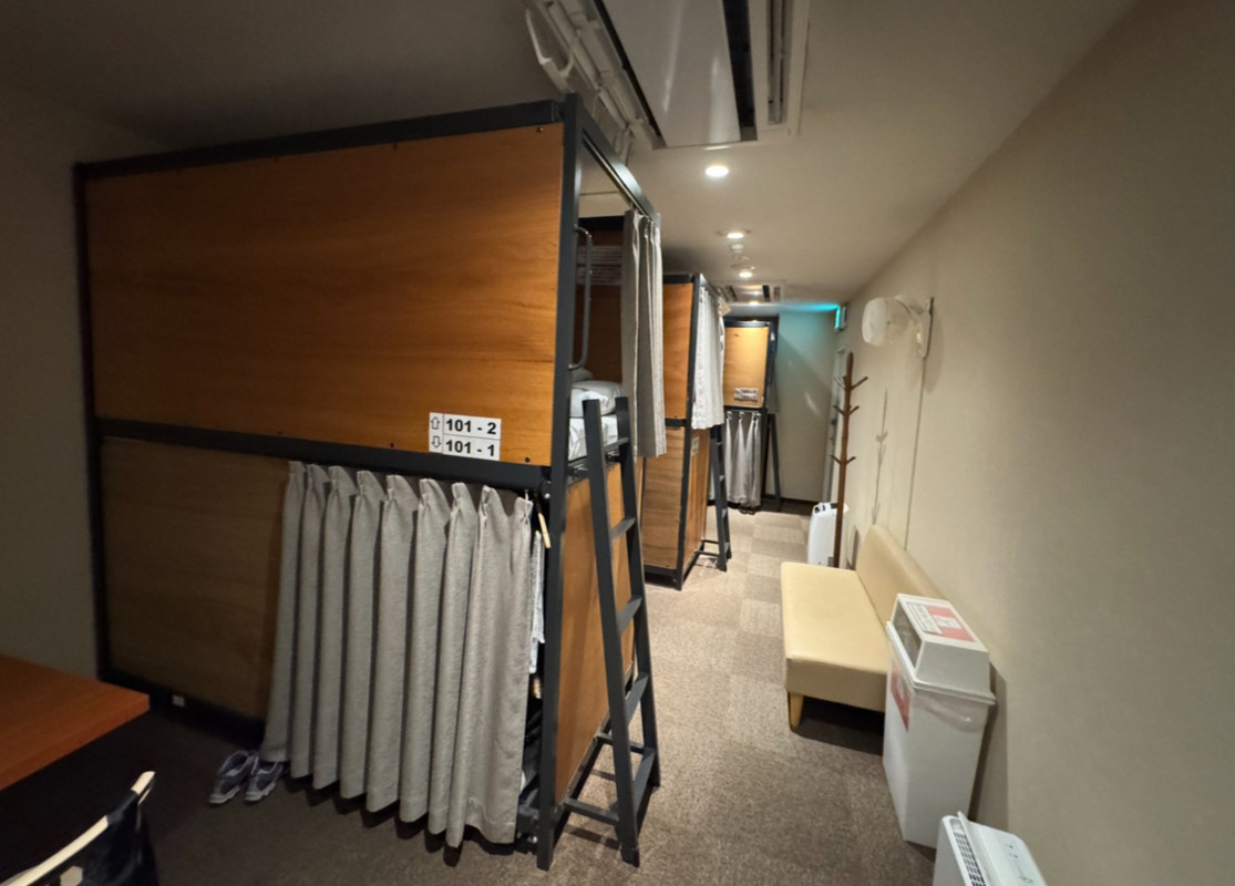 近鉄奈良駅からはアクセスはいいです。木の2段ベットが3棟あって隣とは間隔があるのでプライバシー面では大丈夫でした。上だったのですが、下の人が動くのが気になりますし、上にいても動いたら連動するくらい不安定なベットでした。ホテルのカードタイプの鍵で入り口の開閉が結構ガチャガチャとうるさいです。寝るスペースにロッカーがあるのでパッキングする音など部屋に響くのでイヤホンは必須です。朝食は7時からですがすぐにいっぱいになるので早めに待機したほうがいいです。正直味は普通でした。ないよりはマシです。シーツと枕カバーと掛け布団カバーを自分で剥がして入れるというのも少し面倒でした。マイナス面が目立ちました。