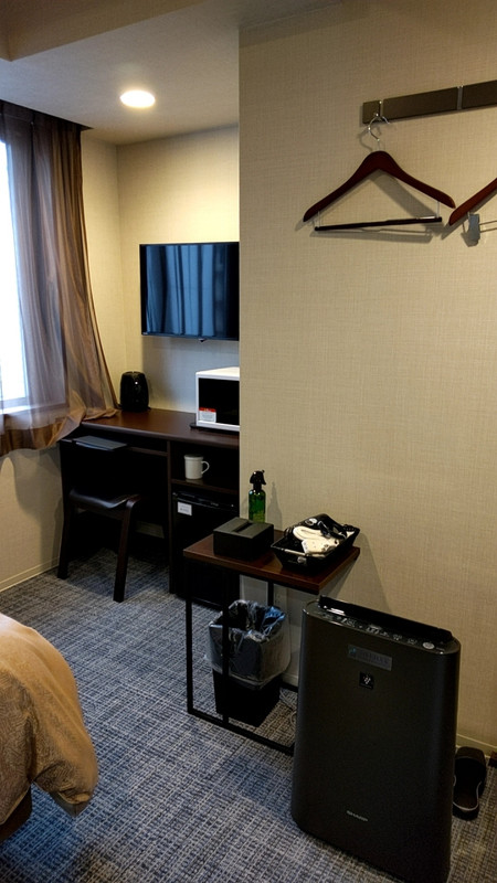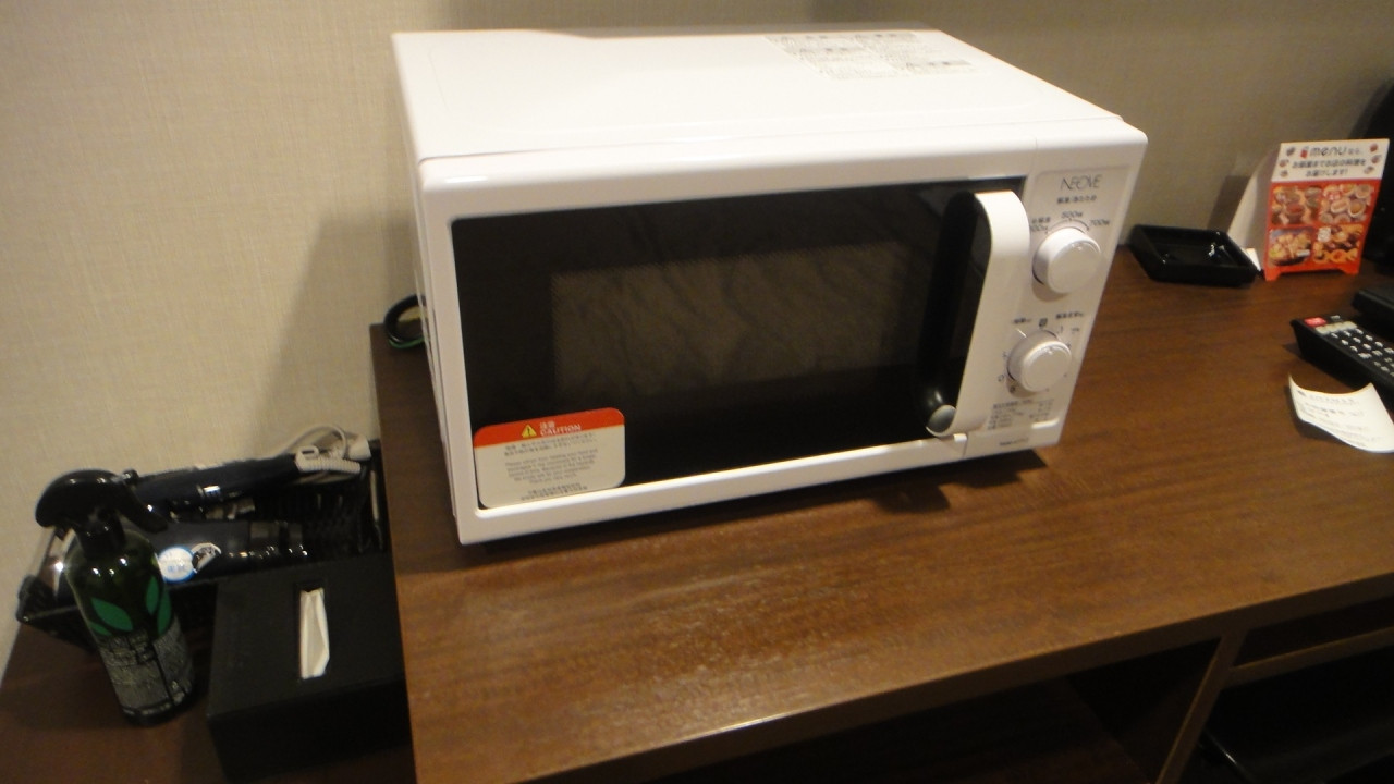 部屋の広さはビジネスホテルとしては標準的。ややバストイレが狭めか。リブマックスならでは室内に電子レンジもあった。