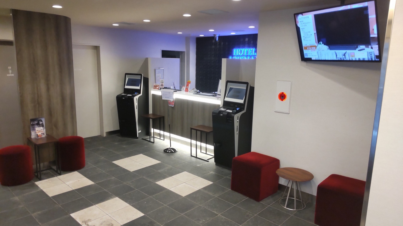 フロントには人気が無く自動チェックイン機が2台。私はホテルに慣れているので適当にチェックイン機を操作して問題なくチェックインできましたが、リブマックスだからホテル慣れしたビジネスマンしか泊まらないと決めつけているわけではないでしょうに、慣れない人だと困るのでは?