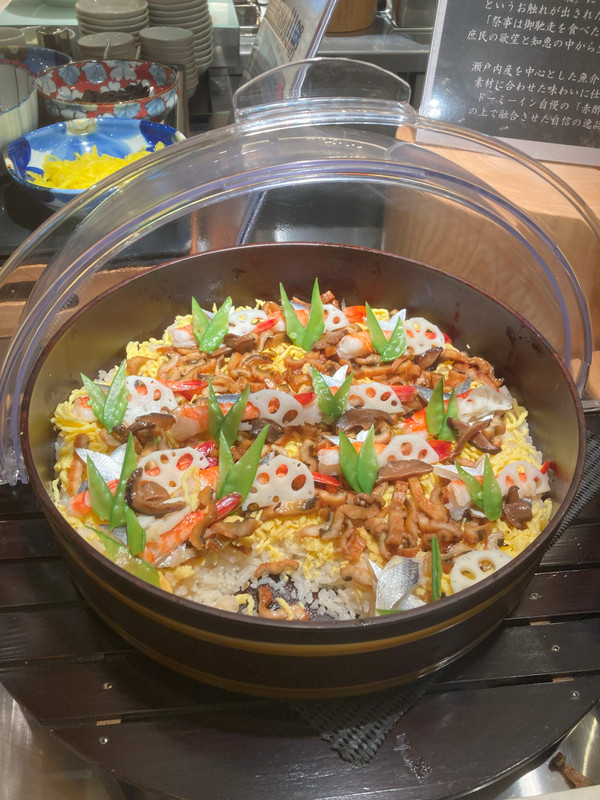 モーニングビュッフェは岡山産の物が中心。注文して焼いてくれるオムレツや、お刺身が美味しかった!