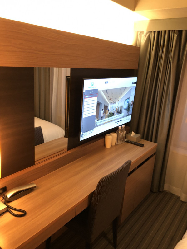 冷蔵庫にはペットボトル2本が無料で用意されていました。アメニティは1階のフロント横から自分で持っていく方式。部屋は至って普通の配置で、清掃も行き届いていました。エレベーター脇には、ズボンプレッサーも用意されており、ビジネスマンにはうれしかったです。1 / 3