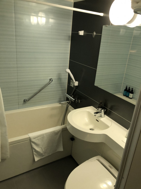 地下鉄淀屋橋12番出口から数分とアクセスはいいです。客室は通常のビジネスホテルより少し広かったです。浴槽も広めでした。おにぎり2個と味噌汁がついた無料朝食も希望すれば地下のレストランでもらえます。ただ、部屋は少し照明が暗めでした。