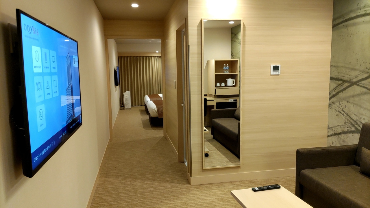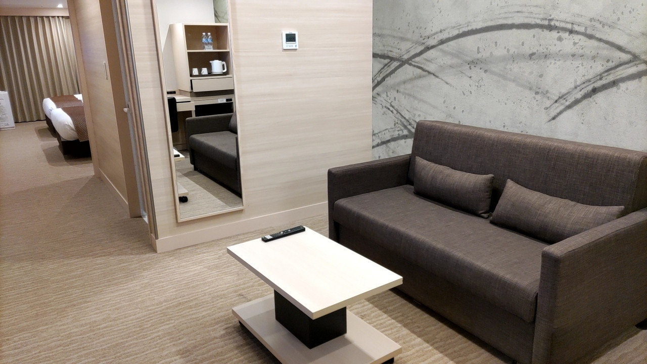 部屋指定なしのプランで予約しましたが、中央にバスルームを挟んでベッドルームとリビングが分かれた広い部屋でした。ビックリ