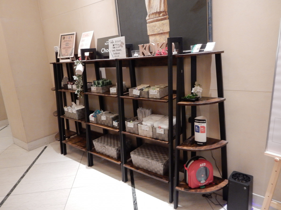 アメニティはフロント横の棚から自分で持って行くタイプ。