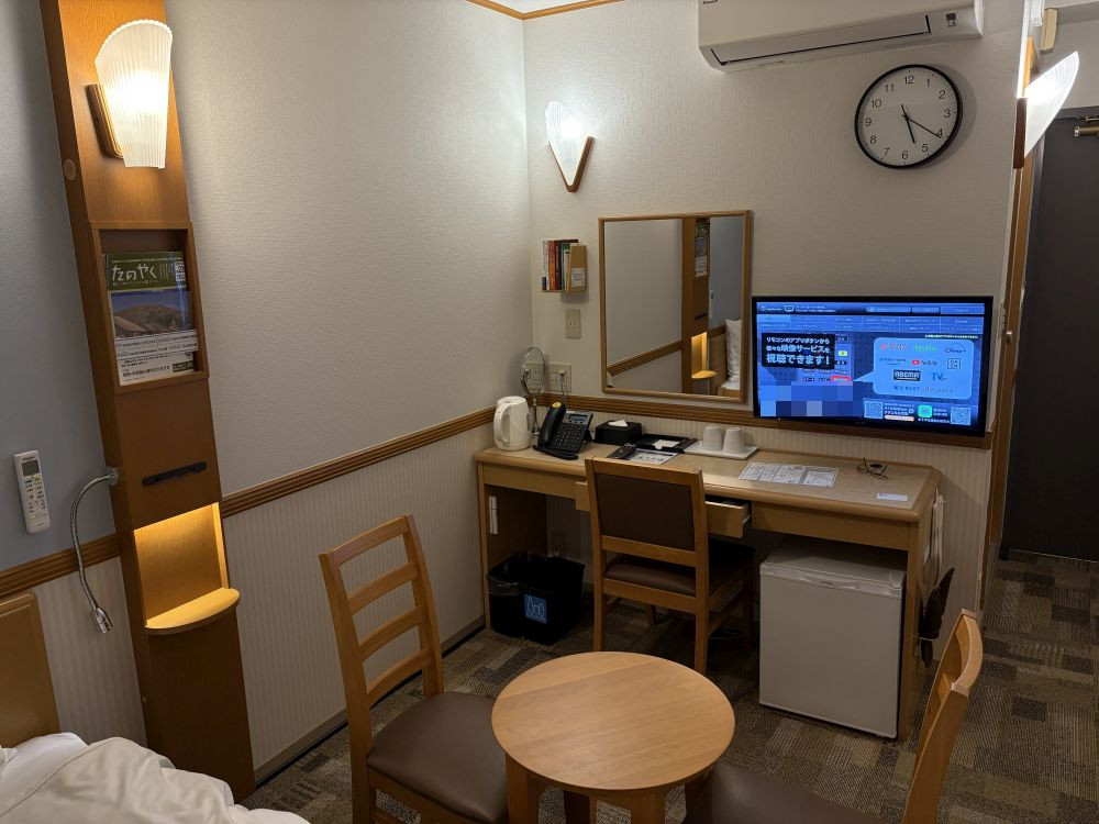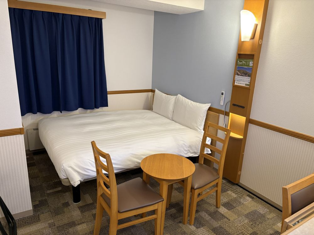 1人での宿泊なのでシングルになりますが、部屋はダブルだったので広さもまずまずありますし、ベッドも大きくて良かったです。ユニットバスもきれいですし、清潔感もしっかりされていました。