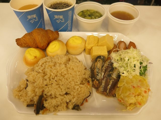 無料の朝食も必要最低限のものは揃ってました。周りにコンビニも多く、ちょっとした商業施設である横浜市役所も目の前ですので便利だと思います。1 / 1