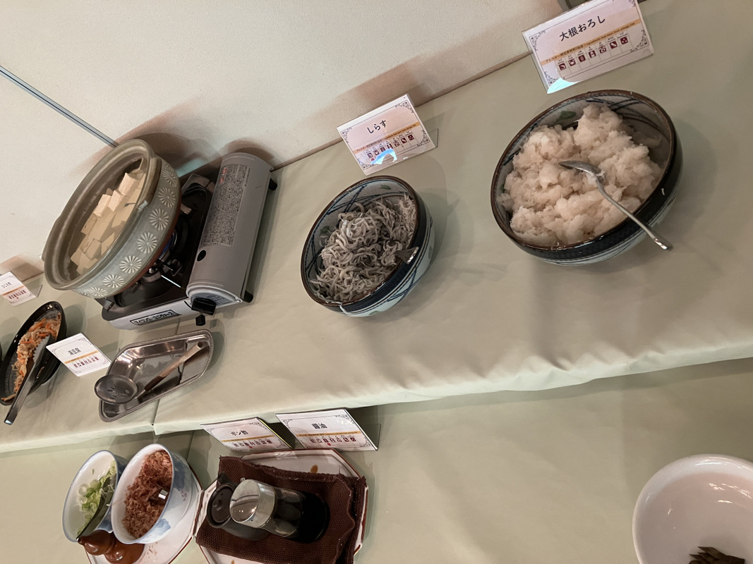 夕・朝食はビュッフェ形式、入口の熊に驚きましたが、品数は少ない感じがしました。
