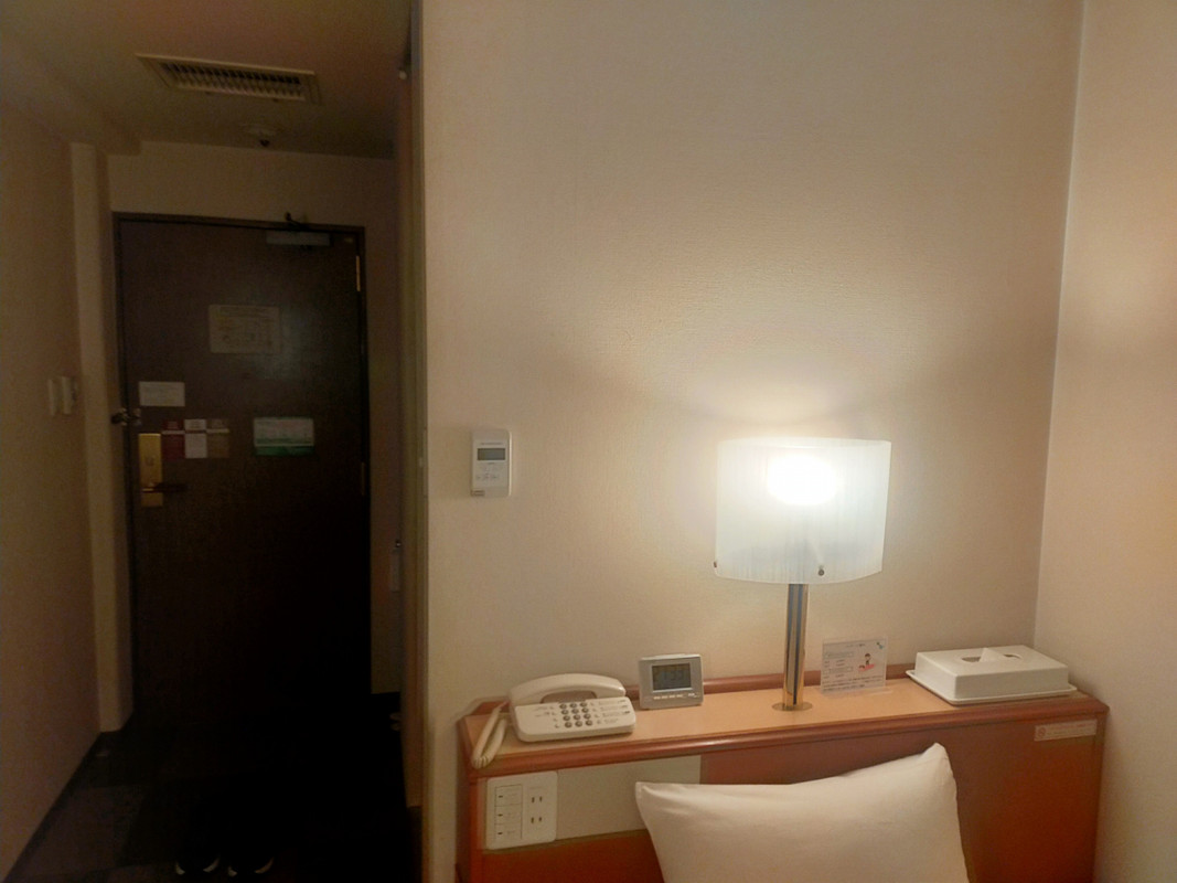 個別空調で枕元にコンセント完備と基本的なものは全て揃っています。