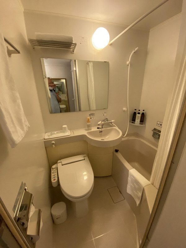 JR長崎駅に近い普通のビジネスホテル。コロナ対策のため、チェックイン・アウトは自動受付機による、「ありがとう」も言わない、静かで味気のない非対面方式。朝食もレストランで提供されるのではなく、1階でテイクアウトし、客室でいただく方式。米飯かパンを選べておかずもそれなりに充実し、手提げ袋に入れて渡されるので、持ち帰りしやすかった。また、駐車場も平置きで使いやすかった。
