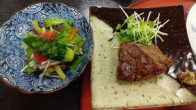 夕食は豊後牛のコース。おいしくいただきました。1 / 9