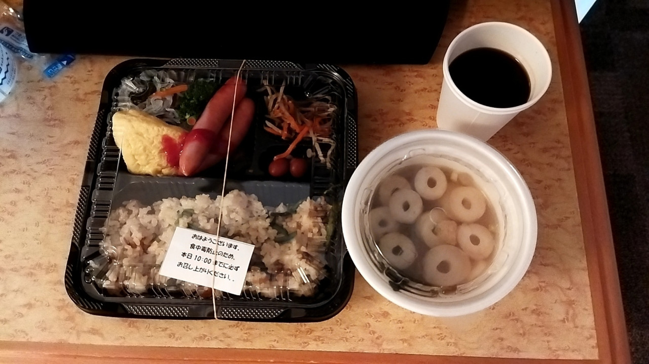朝ごはんを部屋で食べれるように弁当を提供いただき、さらには味噌汁も蓋付きの入れ物で提供いただくなどいたれりつくせりでした。他のお店もこういうシステムがあるといいですね。1 / 1