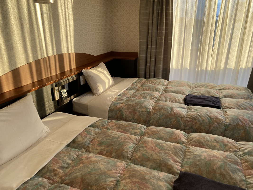 ホテルは混んでいるわりにエレベーターが1つしかないのが残念ですが部屋の中は広く、ソファもあり快適です。少し古いですが、清掃や修繕が行き届いている感じです。駐車場は隣接されています。ホテルの中には居酒屋があり、またホテルのまわりにもモスバーガーや焼肉屋など徒歩圏内にいろいろとあります。なお、朝夕はホテル周辺道路が混雑します。