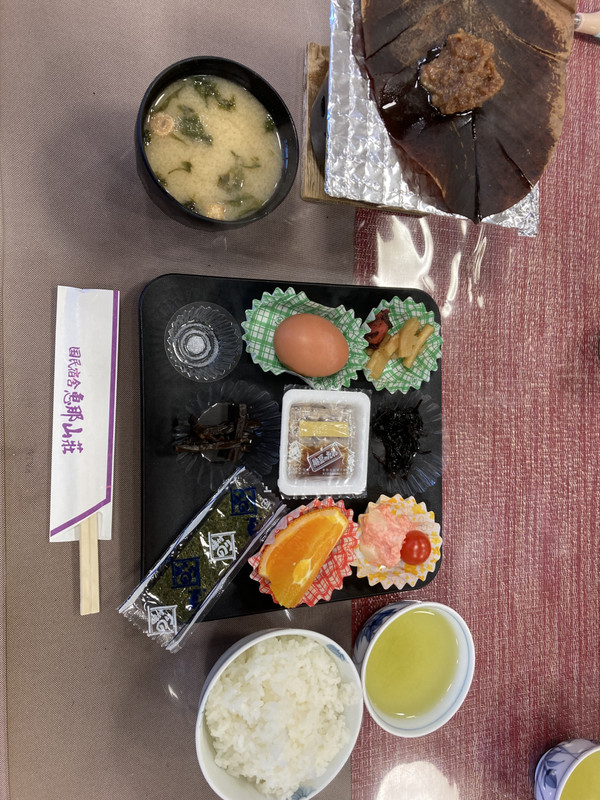 朝食千円で付けましたが、ごはん味噌汁漬物ゆで卵オレンジしかなかった。つけなければよかった。1 / 2