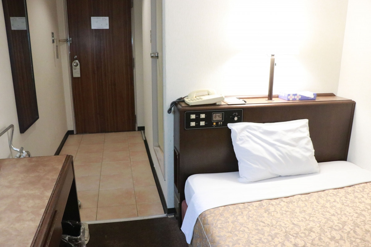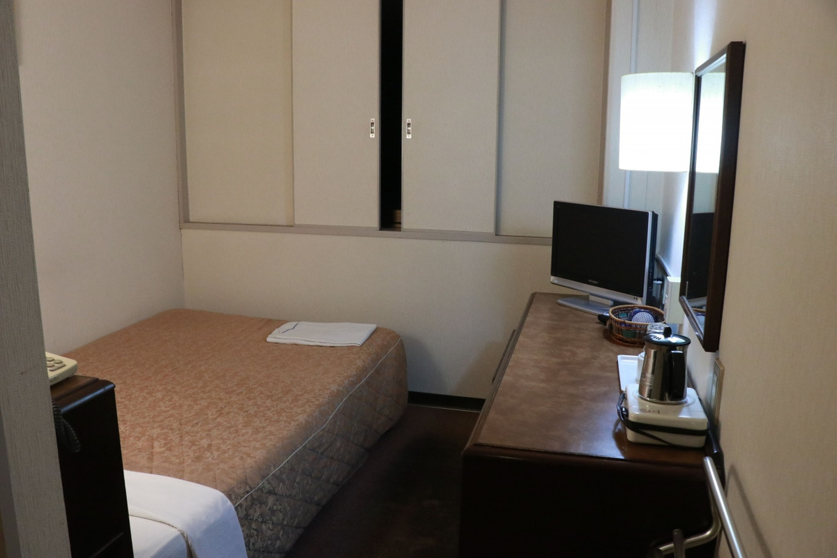 室内はシングルにしてはまあまあの広さがありましたが、かけ布団の古さは否めずもう少し改善してほしいところではあります。外観もあまり新しいとは言えず、寝るだけなら十分といったところでしょうか?