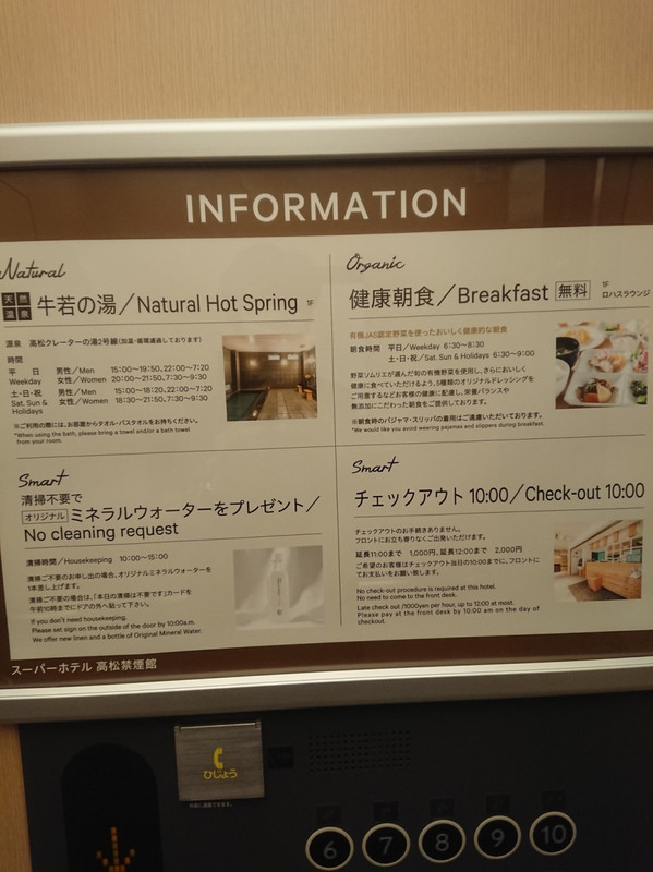 高松の宿泊で利用しました。部屋は広くはないですがきれいですし、朝食もついています。コンパクトながら温泉もついていますので、コスパはいいです。ただ残念なのは温泉が1つしかないので、男女で入れる時間が限られているということ。とくに女性の時間は短いので注意です。
