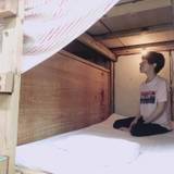 日本国内でバースデー割引じゃないのに800円で泊まれるのには驚きましたが、その寝床が二段ベッドの更に上の畳のスペースだったのには驚きました。3mの高さにあるので通路から全く見えない点はよかったですが上り下りはなかなか大変。