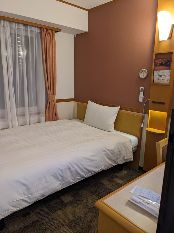 仙台駅を降りると、雨が降っており徒歩でホテルに向かうには傘が必要になり、仙台駅直結の東急ハンズで折り畳み傘を購入。シングルルームを予約していましたが、チェックインでダブルルームの部屋にして頂きました。この部屋替えが幸か不幸か、夜22時頃に、隣部屋から中国語で騒ぐ声が聞こえ、子供がドタバタ音を立てていました。30分程で治まり、夜中は静かに寝れました。ロビーの朝食を食べるスペースは狭いです。