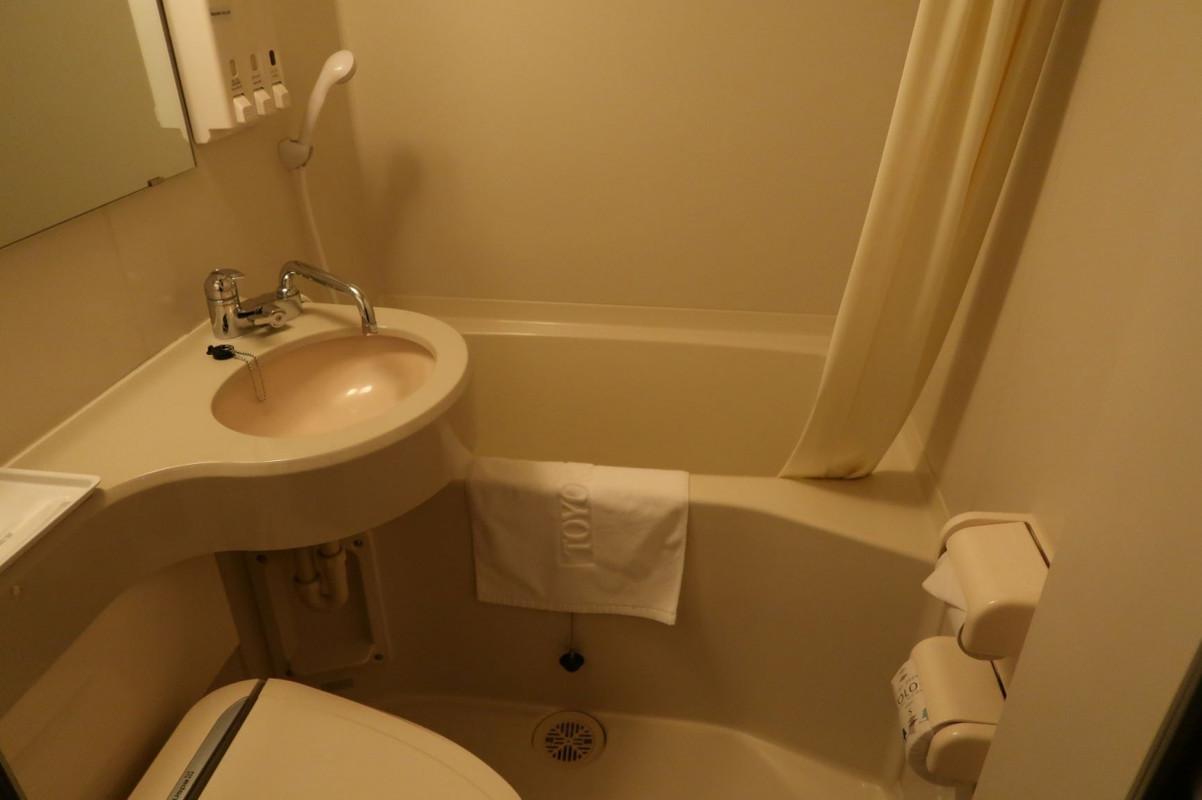 ベッドが広くて、部屋も広々としており、また、ベッドのサイドライトや照明のスイッチが複数あって使い勝手が良かった。特に、コンセントの多さは、東横インの売りにしても良いと思っている。バスルームも比較的広め。
