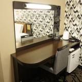 部屋は一般的な広さで落ち着いた柔らかなデザイン~、長いデスクと大型TVにクロークとテーブルセットが有るのは好いですね!。