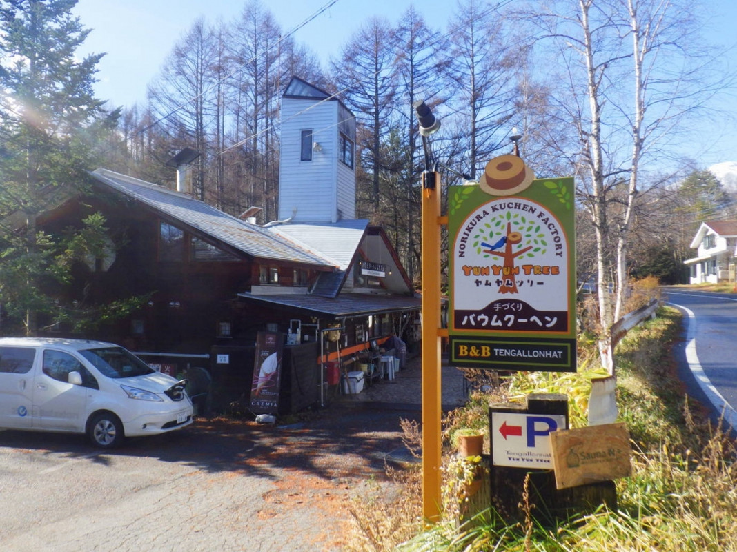 ペンション テンガロンハットの「YUM YUM TREE」で信州割のクーポンを使ってバームクーヘンを購入しました。アップルシナモン味の「シラカバ」650円とバター味の「ツリー」550円をいただきました。「シラカバ」はバームクーヘンとしては軽めで、アップルシナモンの香りが心地よくて美味しかったです。「ツリー」も軽くバターの香りがとても強かったです。味は悪くないですが、ちょっと値段がいいなと思いました。