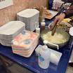 無料の朝食には、肉すいがあり生の野菜(キャベツ)がある。