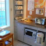 朝食の軽食は、スーパーでよく売ってるような袋入りパンとコーヒー、ジュースをセルフで頂く感じです。