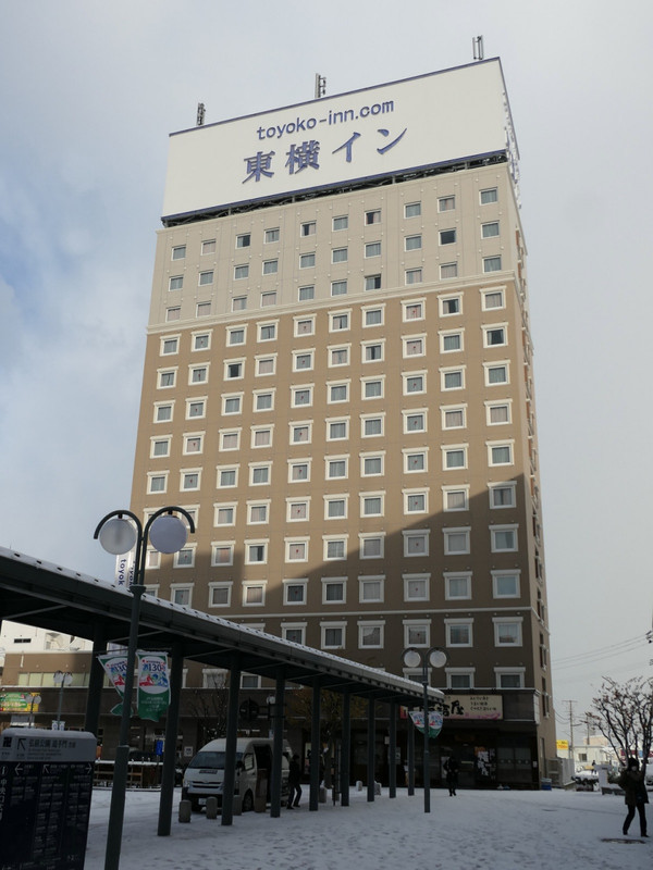 JR弘前駅を出て右手を見ればすぐわかります。本当に駅の隣。到着時は雪がかなり降っていたので、この距離は大変助かりました。