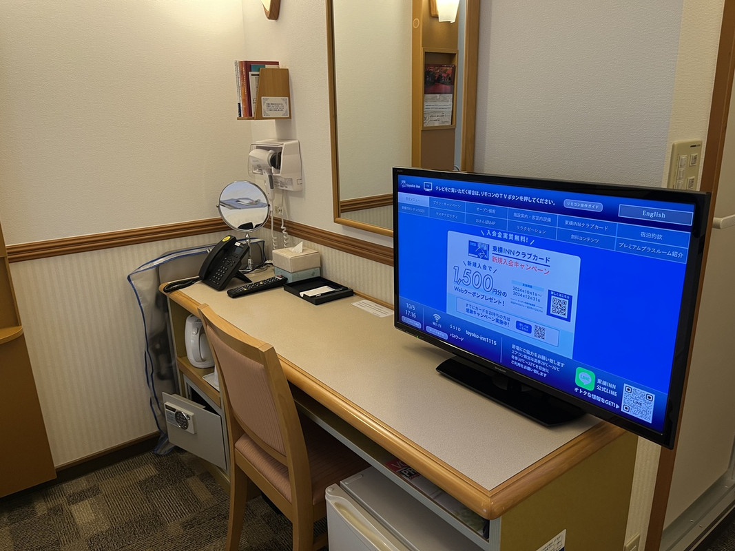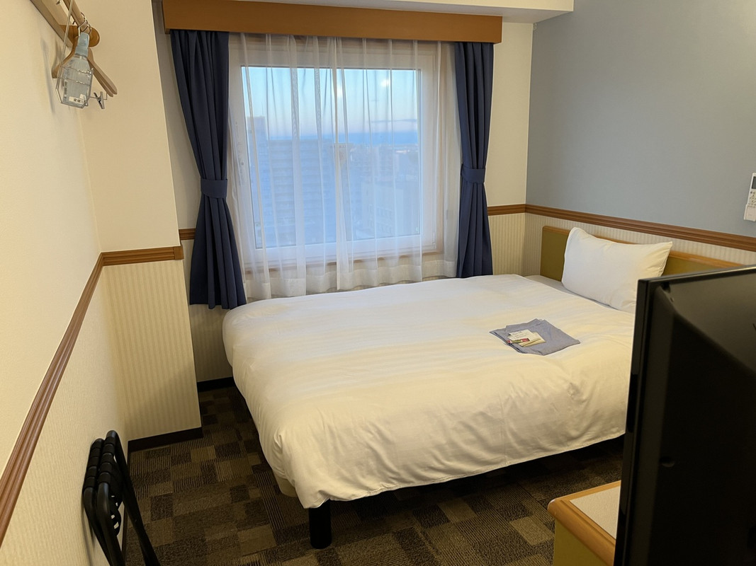 全国に展開する東横インはこのところ早めに予約でいっぱいになってしまったり、安くなかったりという事があり、たまにしか使いませんが、地方はまだ安めでした。いつもの事ながらベットは硬めで私は好きでは無いです。駐車場は立体で料金500円です。朝食はおにぎりでした。